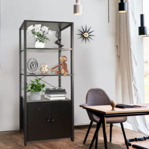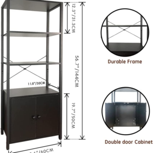 Brand:4-Layer Industrial Bookshelf | Bookcase with 2 Doors | Standing Storage Cabinet | Multi-Room Use (4-Tier, Black). Equipped with an anti-tilt device to improve stability. STURDY & STABLE – The bookshelf is made from high quality steel and MDF, which makes it sturdy and stable.