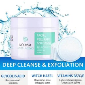 Brand:ANTI AGING RESURFACING PAD FOR FACE: Glycolic acid exfoliating pads gently exfoliate the skin is ideal for brown spots and uneven skin tone and oily skin types. They exfoliate the skin and reduce scars, help minimize the appearance of uneven skin texture and other signs of aging.