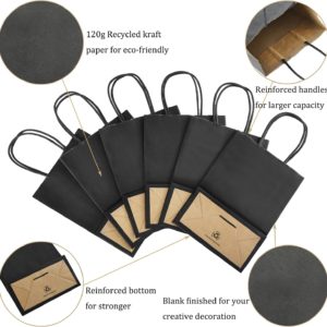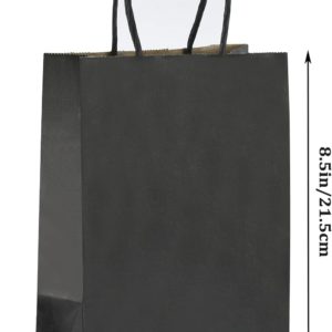 ALINK 50pcs Party Bags Kraft Gift Bag 15 x 8 x 21cm Brown Shopping Paper Bag with Twisted Handles for Party Favor, Packaging, Customization, Carry, Retail, Merchandise, Wedding – Black