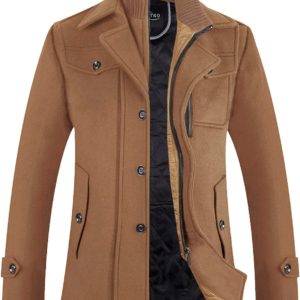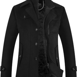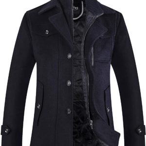 Brand:STYLISH WOOL BLEND JACKET—These single breasted military pea coat jackets are designed with detachable windbreaker’s inner rib and extra soft stand collar for adapting all weather. 80% Wool, 20% Polyester.