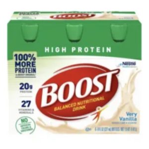 Brand:Boost High Protein Complete Nutritional Drink, Very Vanilla, 8oz, 6CT Apr-2023. Supplement nutritional drink. Boost very vanilla 6 ct box 8oz bottles. Expiration April 2023 I have 3 cases of 4 boxes each available deals on mules orders