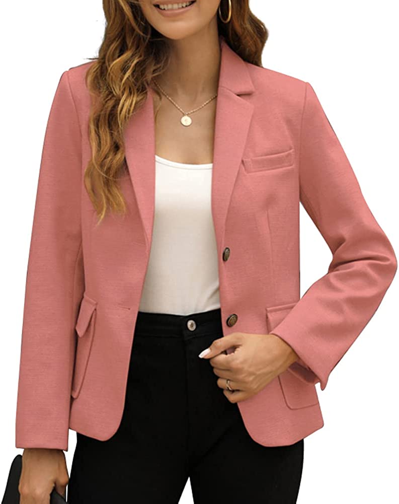 OMZIN Womens Blazers Casual Open Front Long Sleeve Casual Jacket Coat Blazer Jackets Rose L