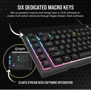 Brand:Dust and Spill-Resistant – 6 Macro Keys with Elgato Integration – Per-Key RGB Backlighting – QWERTY UK Layout – Black
