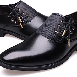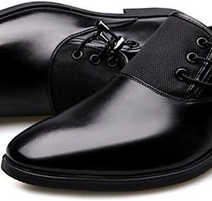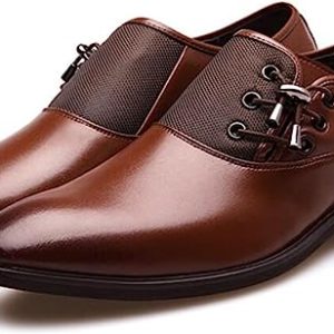 FRASOICUS Men’s Dress Shoes with Genuine Leather in Classic Brogue Elastic Band Oxford Formal Shoes for Men