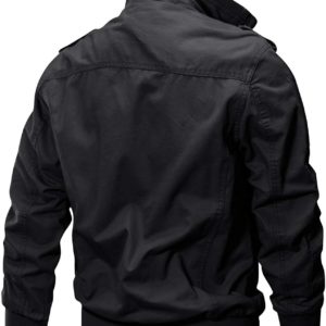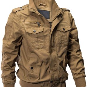 Brand:Multi Pockets: 2 side hand pockets and 1 inside pocket,2 button-flap pocket at both chest, practical and stylish! Double Closure: Millitary cargo jackets with durable full-length zipper closure as well as button closure for extra protection.