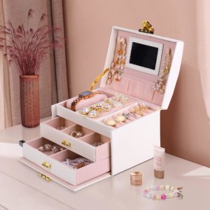Be the first to review “Jewelry Box for Girls Women, Jewelry Organizer Box 3 Layer with PU Leather, White Travel Jewelry Case with Mirror for Earring Ring Bracelet Necklace Watch Glasses Storage (Rose Lock & Butterfly Print)” Cancel reply