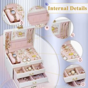 Jewelry Box for Girls Women, Jewelry Organizer Box 3 Layer with PU Leather, White Travel Jewelry...