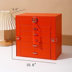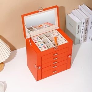 Brand:【Characteristics of large capacity of 6 layers】 : Large jewelry storage box has makeup mirror, two rows of ring slots (about 30 rings), 16 necklace hooks, 5 drawers (earrings, pendants, bracelets, watches, sunglasses, etc.).
