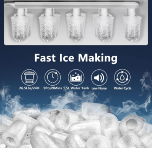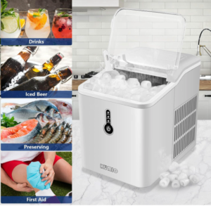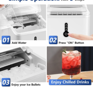 Brand:Countertop, 12kg/24h, 9 Thick Bullet Ice Ready in 6-9 Mins, Portable Ice Maker with Ice Scoop and Basket, 1.5L Water Tank, Compact Design for Home Kitchen Office Party (White)