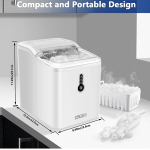 Countertop, 12kg/24h, 9 Thick Bullet Ice Ready in 6-9 Mins, Portable Ice Maker with Ice Scoop and Basket, 1.5L Water Tank, Compact Design for Home Kitchen Office Party (White)