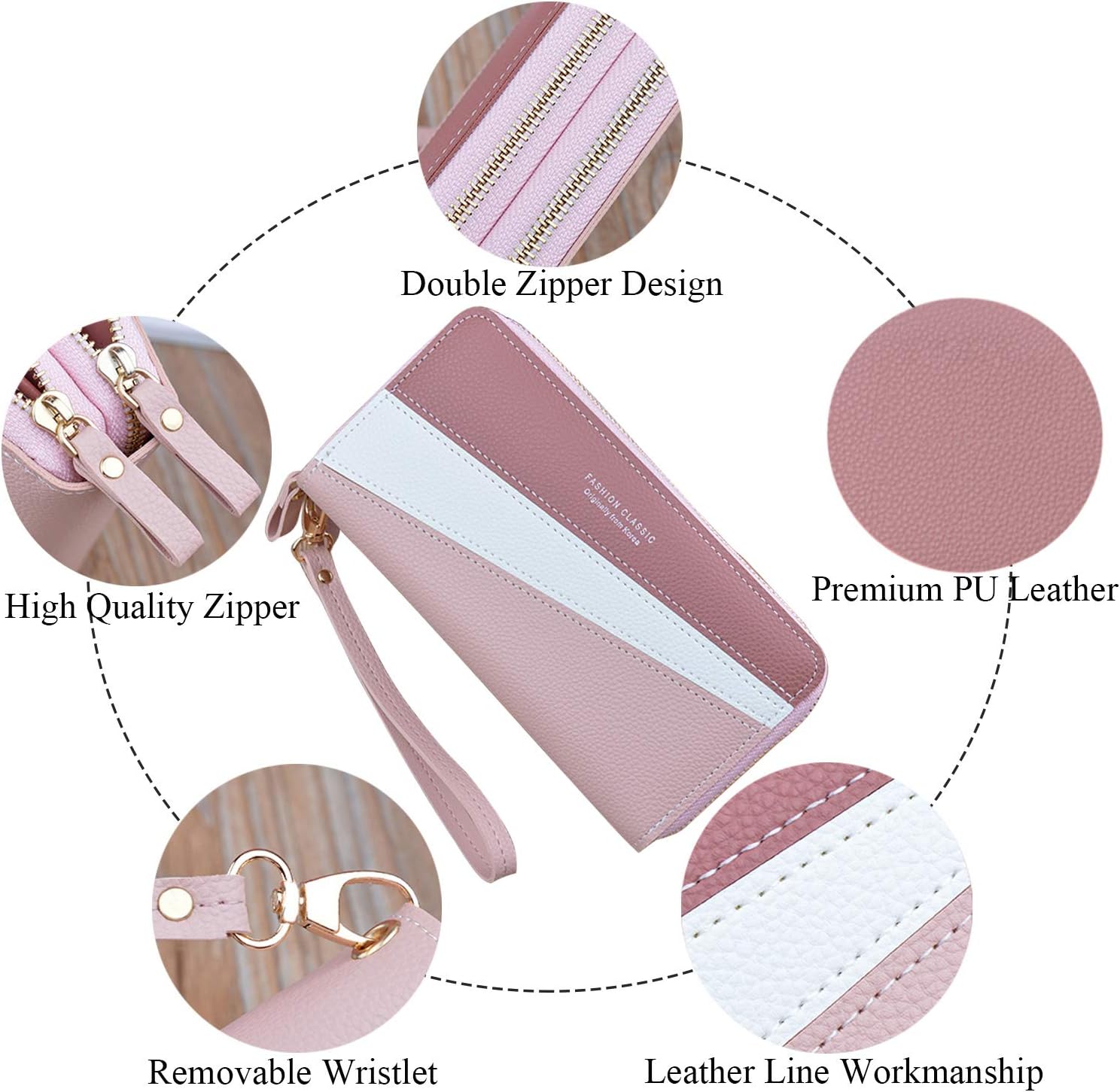Ladies Purse Wallet with Double Zipper Coin Purse PU Leather Phone Wallet for Women Large Capacity Long Clutch Wallet with Multiple Card Slots Wristlet Wallet (Pink3)