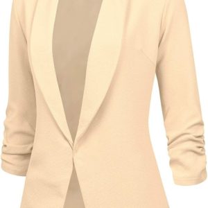 Brand:3/4 length Ruched sleeves Open Front Blazer / Pull On closure. Machine washable. Washing max 30?., Hang Dry, Low iron. They are really soft and flexible, but they still have great structure. You can wear these to work and look professional.