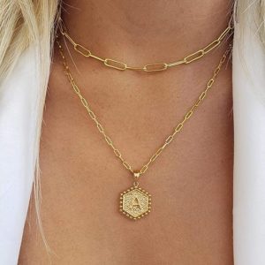 Foxigrl Dainty Gold Initial Necklaces for Women, Trendy Gold Letter Necklace Tiny A-Z Pendant Choker Necklace Cute Simple Personalized Monogram Name Necklace Gold Jewelry Necklace for Teen Girls Gift,