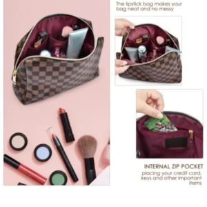 Brand:The clear texture of leather, the comfort of leather and its beautiful appearance reflect the beauty of leather. 1 x Checkered Makeup Bag. Suitable for all kinds of daily life or travel. Multifunction Brown grid pattern design, golden zipper, simple and advanced color matching.