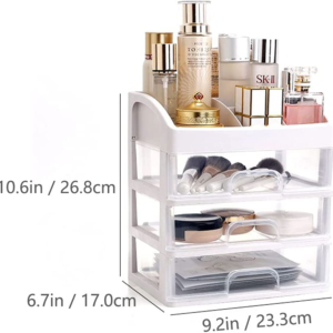 Brand:Organize cluttered drawers and saves space on your vanity tabletop, easy to find, easy to reach, and in one easy location. Perfect Design – There are 3 drawers and top multifunction partition. Multi-Function – Multi-Function makeup organizer for vanity, table, countertop and desk.