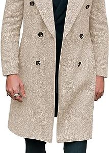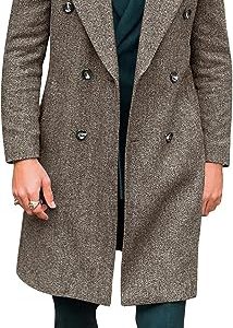 Mens Trench Coat Double Breasted Classic Notched Lapel Regular Fit Long Pea Coat Fall Winter Business Overcoat
