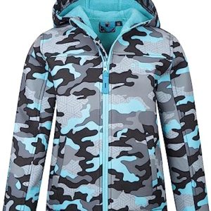 Girls Rain Jacket Kids Hooded Raincoat Windbreaker with Fleece Lining, 2906, 12