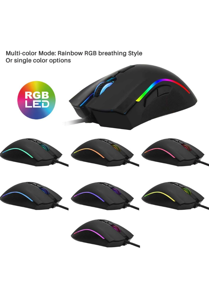 Brand:Rainbow LED Light, 7 Programmable Buttons, Chroma RGB Backlit, 4800 DPI Adjustable, Comfortable Grip Ergonomic Optical PC Computer Gaming Mice, Black
