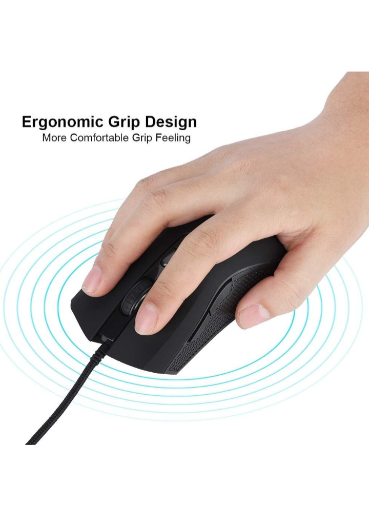 Rainbow LED Light, 7 Programmable Buttons, Chroma RGB Backlit, 4800 DPI Adjustable, Comfortable Grip Ergonomic Optical PC Computer Gaming Mice, Black