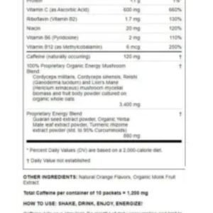 Brand:Energy+ from Organic Mushroom Nutrition supports healthy energy levels. This Citrus Orange flavored drink mix features cordyceps, lion’s mane and reishi mushrooms, energizing B-vitamins and a specially crafted blend of guarana, yerba mate and more. 120 mg naturally occurring caffeine per serving.Supports healthy energy levelsWith an organic mushroom blend of cordyceps, reishi and lion’s manePlus energizing guarana and moreGluten Free, Vegan, Vegetarian
