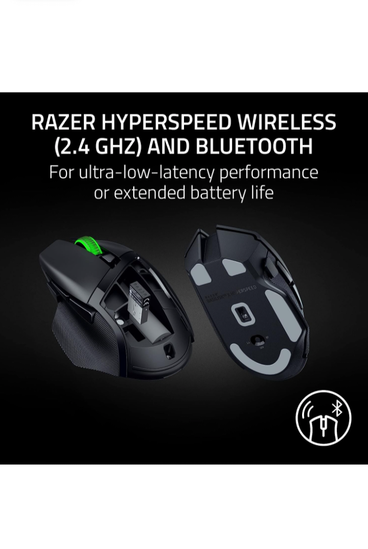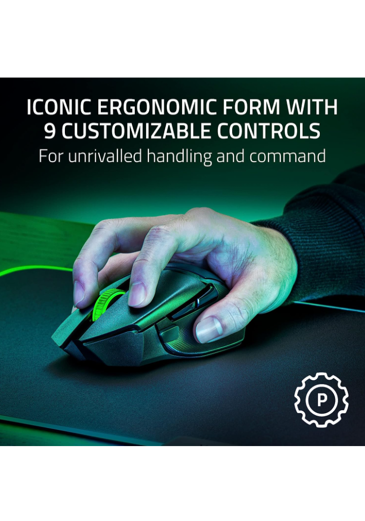 • Razer Basilisk V3 X HyperSpeed - Customizable Wireless Gaming Mouse (Iconic Ergonomic Form with 9 Customisable Controls, HyperSpeed Wireless, 5G Advanced 18K Optical Sensor, Chroma RGB) Black