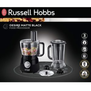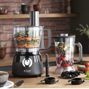 1.5 Litre Food Mixer with 5 Chopping, Slicing and Dough Attachments, Matte Black, 600 W