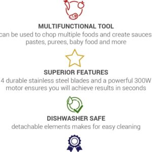 Brand:Electric Dicer, Onion and Other Vegetables – 600ml Blender Bowl and Quad Durable Stainless-Steel Blades – 300W