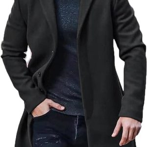 KINKOCCL Long Trench Coat Men Uk Regular Fit Military Winter Trench Coat Slim Fit Full Length Casual Overcoat Winter Casual Double Collar Pea Outerwear