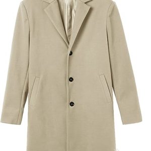 VETCS Men's Business Long Jacket Casual Regular Fit Notched Lapel Single Breasted Mid Length Trench Coat Fall Overcoat,Khaki,S