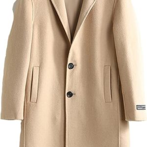 KINKOCCL Men's Classic Notched Collar Wool Coat Winter Warm Hooded Overcoat Double Breasted Long Jackets Coat Windbreaker Outwear Regular Fit Padded Military Peacoat