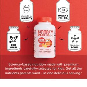 Brand:SmartyPants Kids Formula is a multifunctional gummy multivitamin that contains more of the nutrients parents want in a delicious format that kids love! Our gummy multivitamins are non-GMO and made without any synthetic colors, artificial flavors or sweeteners.