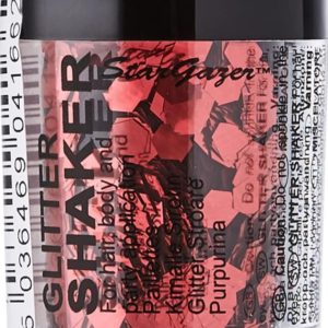 • Stargazer Chunky Glitter Shaker, Red. Cosmetic glitter for use on the eyes, lips, face, body, hair and nails.