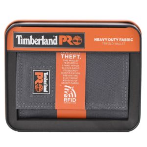 Brand:Timberland Pro RFID Block Trifold Wallet features:- – Cordura Material, 13 standard sized credit card pockets, Hook and loop closure, 1 clear ID Window, A large horizontal cash pocket, RFID blocking protection, Matching in a tin Gift Box, Aprx. Size 4.25″ x 3.5″.