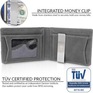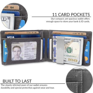 Brand:Our wallets block the 13.56 MHz band and protect against data theft by RFID scanners. It will fit in your pocket perfectly without bulging out.