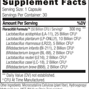 Brand:UMZU: FLORACIL50. We’ve created FLORACIL50 as a daily probiotic designed to help improve. making you feel tired, irritable, stressed, anxious or depressed. FLORACIL50 contains the following 8 research-backed good bacteria.