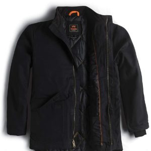 Brand:Classic work wear: 100 percent polyester rip stop diamond-quilted lining with 6-ounce insulation and energy orange stitching surrounded by a brushed duck outer and a fleece lined collar. Body: 60% Cotton, 40% Polyester; Body Lining: 100% Polyester; Fill: 100% Polyester.