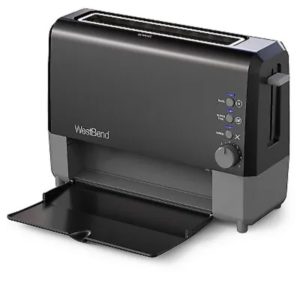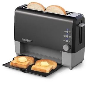 Brand:• 6 settings • Gluten-free function • Wide slot for bagels and breads (slot is 10.2″ x 1.6″) • Serving tray closes for storage • Easy to clean Description The West Bend QuikServe Toaster delivers perfect toast in under two minutes. Features wide toast slot to accommodate many foods, 6 variable toast settings, and Bagel and Gluten-free functions.