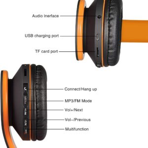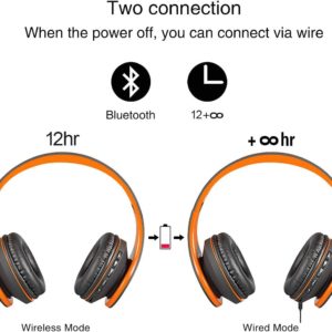 Wireless Bluetooth Over Ear Stereo Headphones, Wireless and Wired Mode Headsets with Soft Memory-Protein Earmuffs, Built-in Mic for Mobile Phone PC Laptop (Black-Organge)