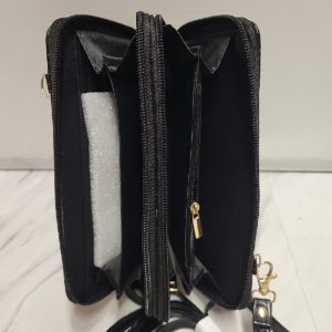 Womens Dual Zipper Wallet with Removable Wristlet And Shoulder Strap Black. Ships fast and free!!!!