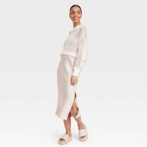 Brand:•Midi A-line slip skirt •Lightweight fabric •High-rise silhouette •Full elastic waistband •Slim fit Description Whether you’re getting ready for a dinner date or going to brunch with friends, this Midi A-Line Slip Skirt from A New Day will be your go-to pick for any occasion. This slim-fit midi skirt is made of lightweight fabric that moves with you as you breeze through your day, while the full-elastic waistband lends comfort.
